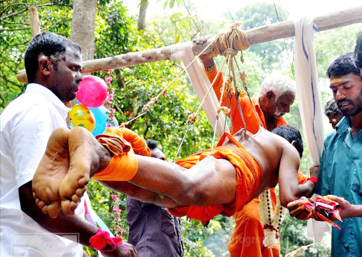 Such rituals are based on the concept of ancient bloody sacrifice practices. Because the hook used to suspend the human body was inserted into the skin, it was a cruel torture and the devotees started arguing its pros and cons. Soon, it became a law-and-order issue when the debated became heated and popular opinion became equally divided. It was made possible to get rid of the uncivilised ritual without conflict and with everyone's support. Elavoor suspension was banned in 1987.